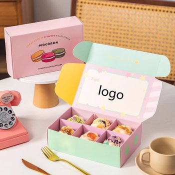 Gepersonaliseerde Duplex Afdrukken Logo Voedsel Dessert Doos Witte Kartonnen Chocolade Macaron Koekjesverpakking