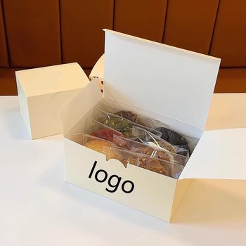 Design personalizado impressão logotipo bio-degradável sobremesa caixa papel cartão branco chocolate donut cookie embalagem caixa